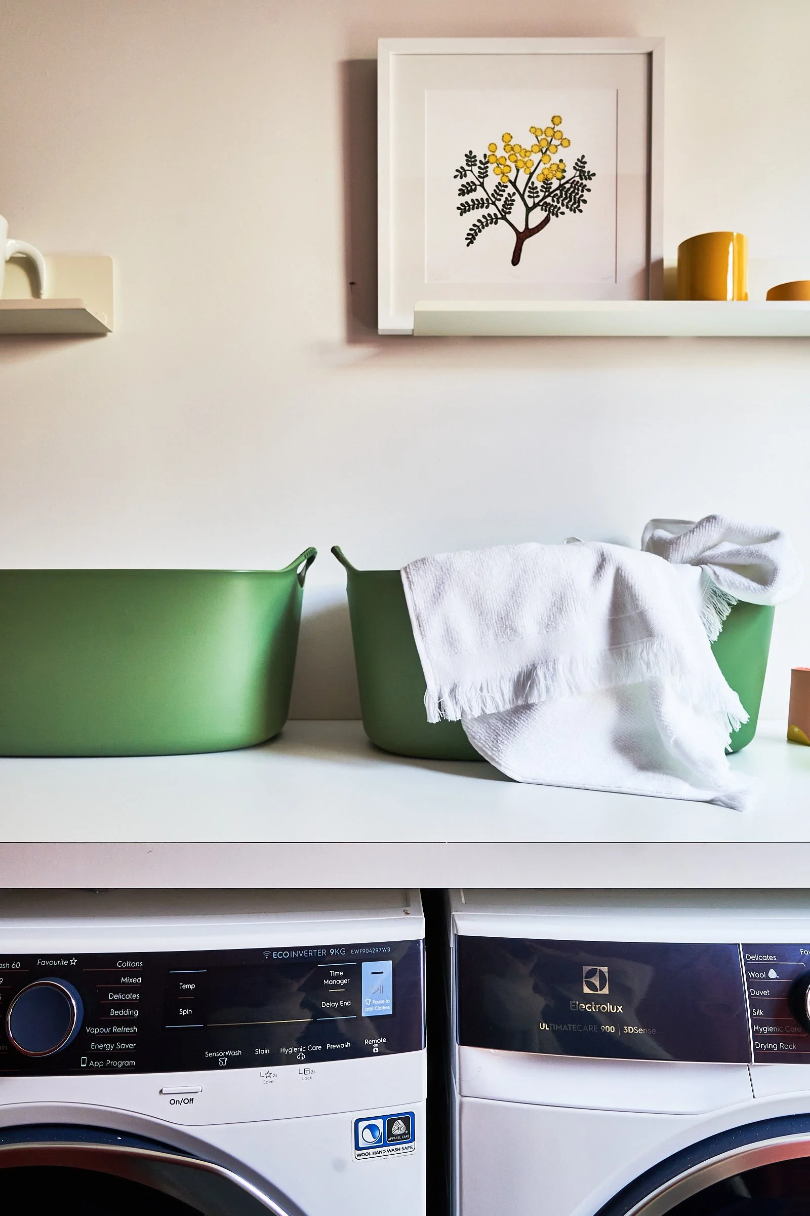 There are plenty of places to sit under the peppercorn tree with a cup of coffee while waiting for your load of laundry.
